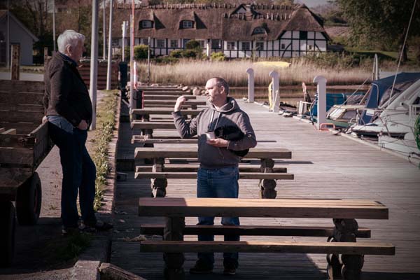frage Hafenmeister John nach dem Wasserstand in der Sturmnacht. Heute