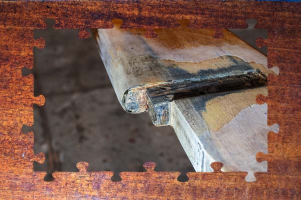 freizukratzen, um den Zustand des Holzes und der Leimfugen